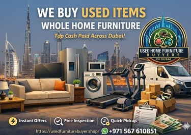 Looking to sell your used furniture, electronics, or gym equipment in Dubai? We make the process fast, simple, and rewarding. Our expert team ensures that every transaction is transparent, fair, and hassle-free. Fast, fair offers for your used furniture, electronics, and gym gear across Dubai with free inspection and instant payment.